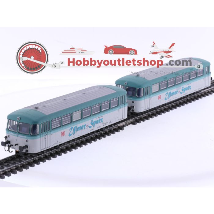 Schaal H0 Märklin 39977 Railbus-motorwagen serie 798 en railbus-stuurstandrijtuig serie 998 van de DB. Digitaal #9000