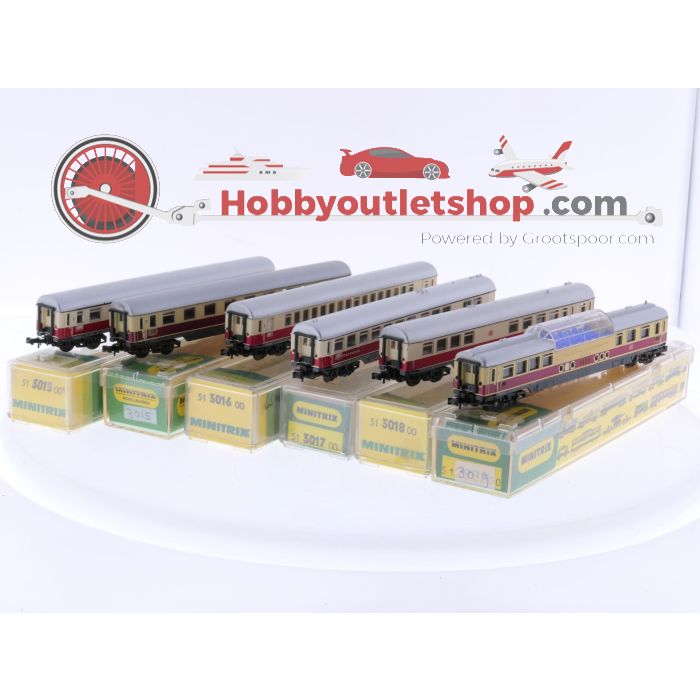 Schaal N Minitrix 3015, 3016, 3017,3018 en 3019 TEE rijtuigen set 6-delig van de DB #9086