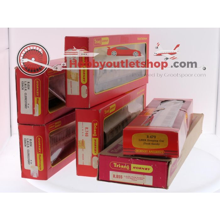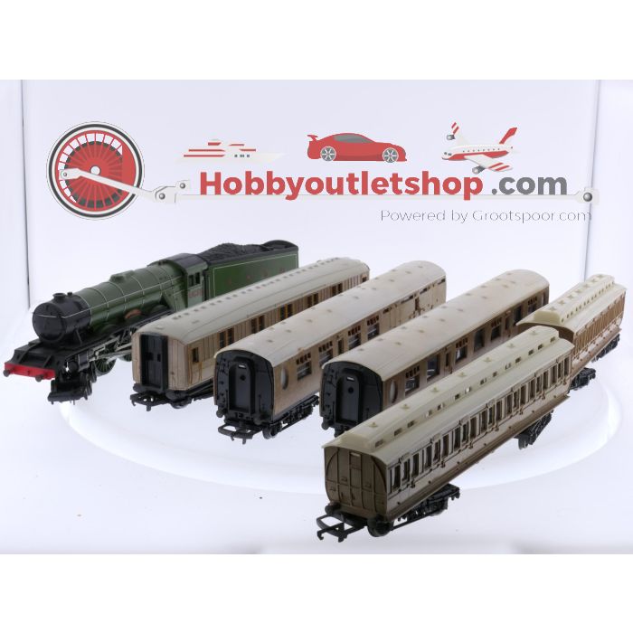 Schaal 00 Tri-ang R.855, R.745, R.746, 2 x R.024 en R.479 stoomlocomotief 4-6-2 'Flying Scotsman' met personenrijtuigen van de BR #7629