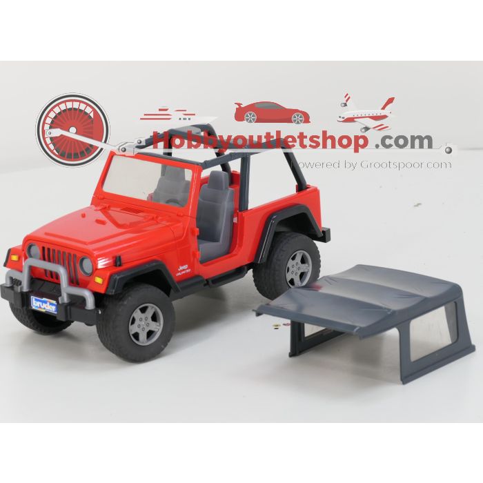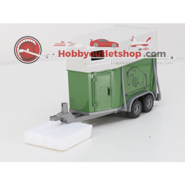 Schaal 1:16 Bruder 2028 en 2520 Jeep Wrangler Unlimited met groene paardentrailer #6654 is beschikbaar om te kopen in verhogingen van 1