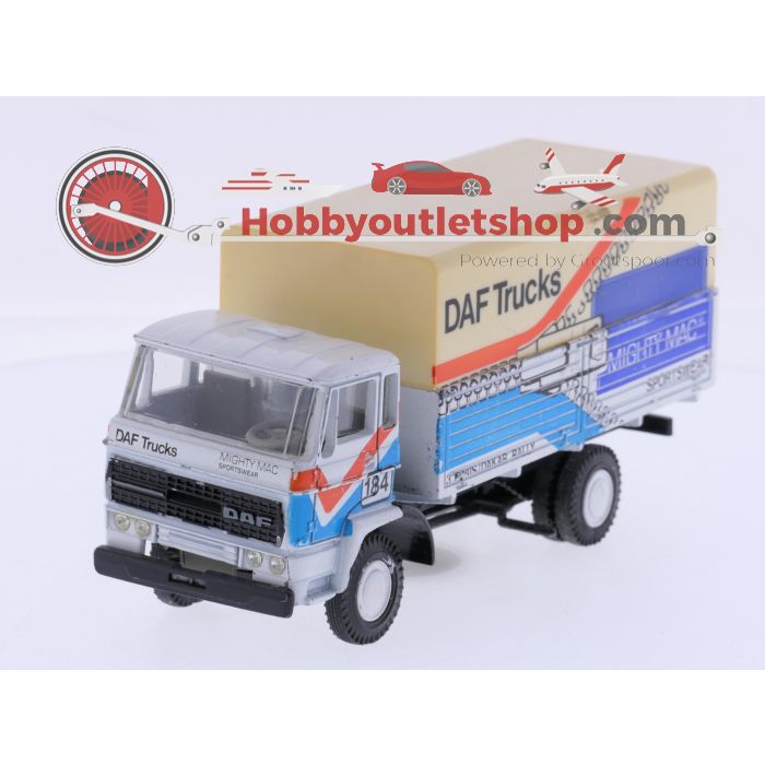Schaal 1:50 Lion Car No. 68 DAF vrachtauto met kantel-cabine en gesloten laadbak Mighty mac sportswear #9218 is beschikbaar om te kopen in verhogingen van 1