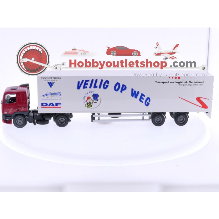 Schaal 1:50 Tekno MUS291 DAF veilig op weg 2000 DAF 85CF gesloten oplegger. #6118