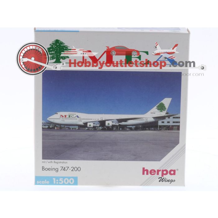 Schaal 1:500 Herpa 502627 MEA - Middle East Airlines Boeing 747-200 Reg.Nr. N203AE #6311 is beschikbaar om te kopen in verhogingen van 1