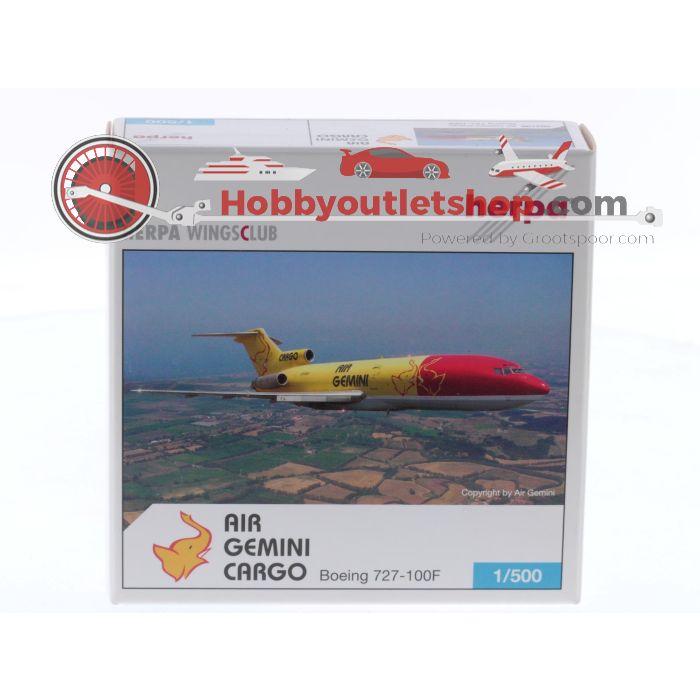 Schaal 1:500 Herpa 503198 Boeing 727-100F Air Gemini Cargo Reg. S9-BAH #8541 is beschikbaar om te kopen in verhogingen van 1