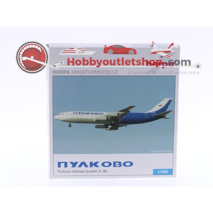 Schaal 1:500 Herpa 506182 Pulkovo Airlines - Ilyushin IL-86 Reg.Nr. RA-86106 #6196 is beschikbaar om te kopen in verhogingen van 1