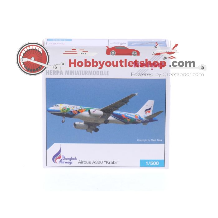Schaal 1:500 Herpa 509121 Bangkok Airways Airbus A320 "Krabi" Reg. HS-PGV #7554 is beschikbaar om te kopen in verhogingen van 1