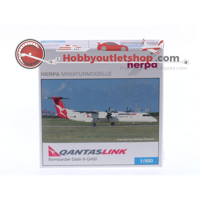 Schaal 1:500 Herpa 509558 QantasLink Bombardier Dash 8-Q400 Reg. VH-QOJ #7499 is beschikbaar om te kopen in verhogingen van 1