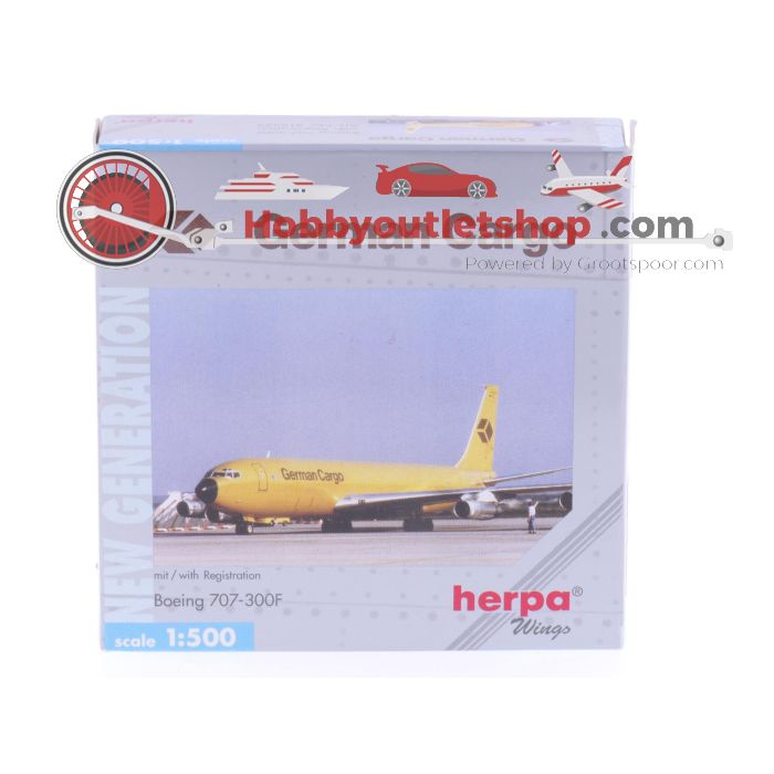 Schaal 1:500 Herpa 512329 German Cargo Boeing 707-300F Reg. D-ABUO #7582 is beschikbaar om te kopen in verhogingen van 1