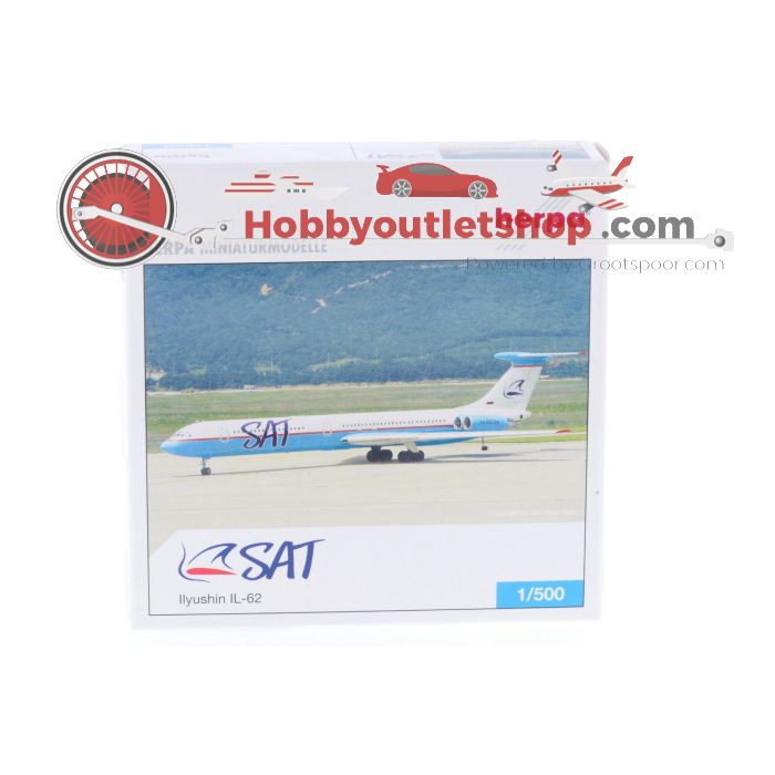 Schaal 1:500 Herpa 515009 SAT Airlines Ilyushin IL-62 Reg. RA-86566 #7174 is beschikbaar om te kopen in verhogingen van 1