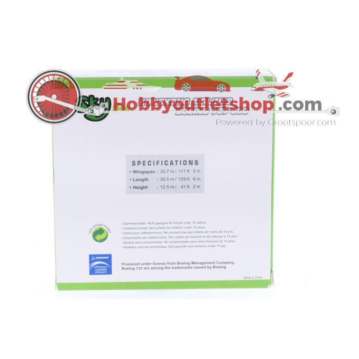 Schaal 1:500 Sky 500 0593HK Hongkong Airlines Boeing 737-800 Reg. B-KBM #7142 is beschikbaar om te kopen in verhogingen van 1