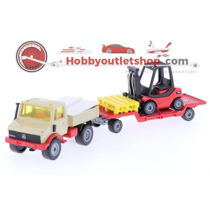 Schaal 1:55 Siku 2522 Unimog U 1500 met heftruck #6714