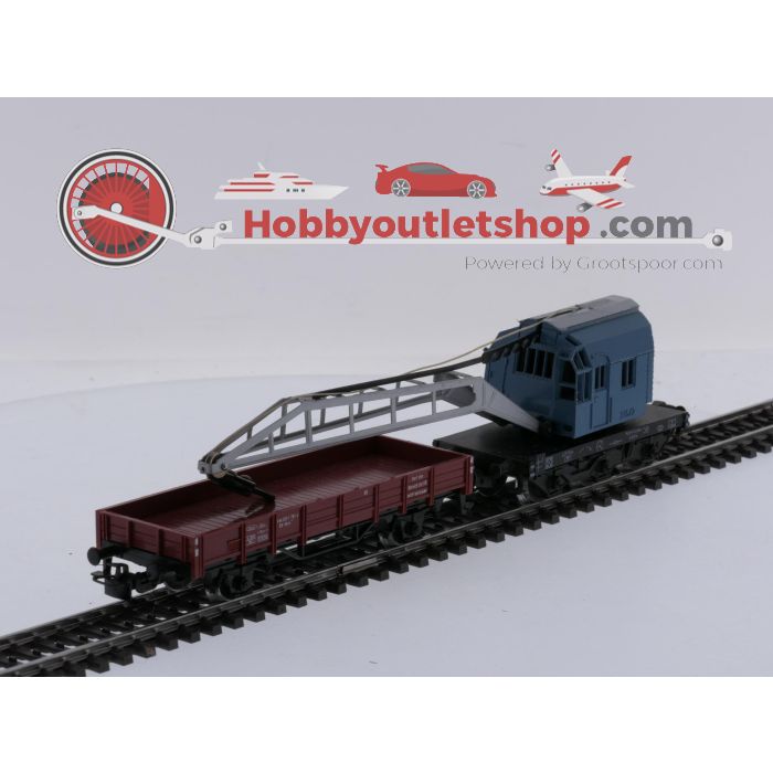 Schaal H0 Märklin 4424 & 4611 kraanwagen Krupp-Ardelt met lageboordwagen van de DB #9109 is beschikbaar om te kopen in verhogingen van 1