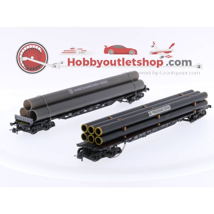 Schaal H0 Roco 46214 en 26781 Rongenwagens met buizen met lading van de DB #5136