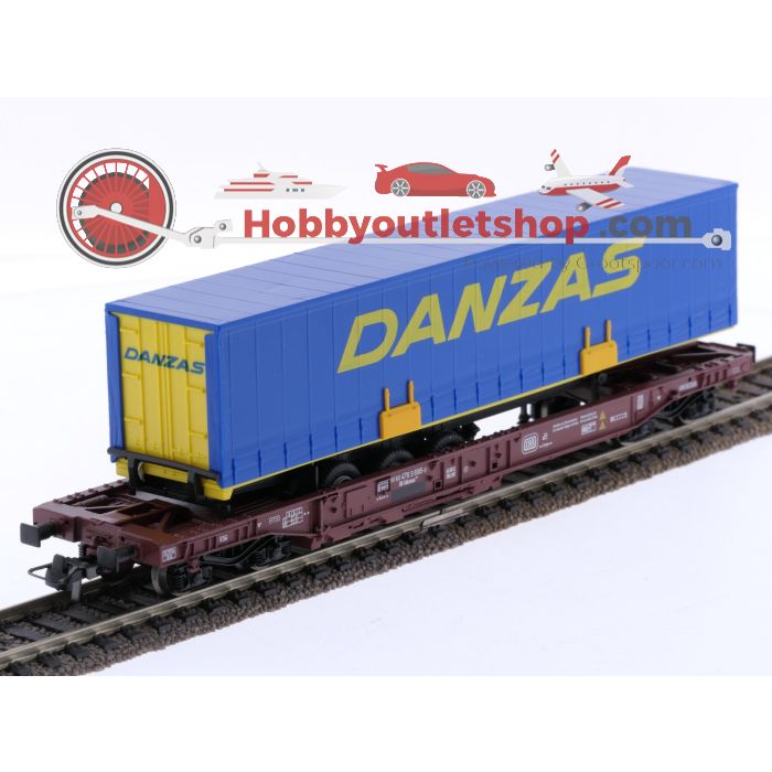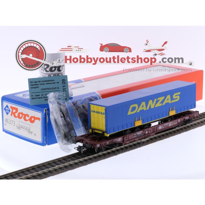 Schaal H0 Roco 46373 dieplader wagen Sdkmss 707 "Danzas" van de DB #6852 is beschikbaar om te kopen in verhogingen van 1