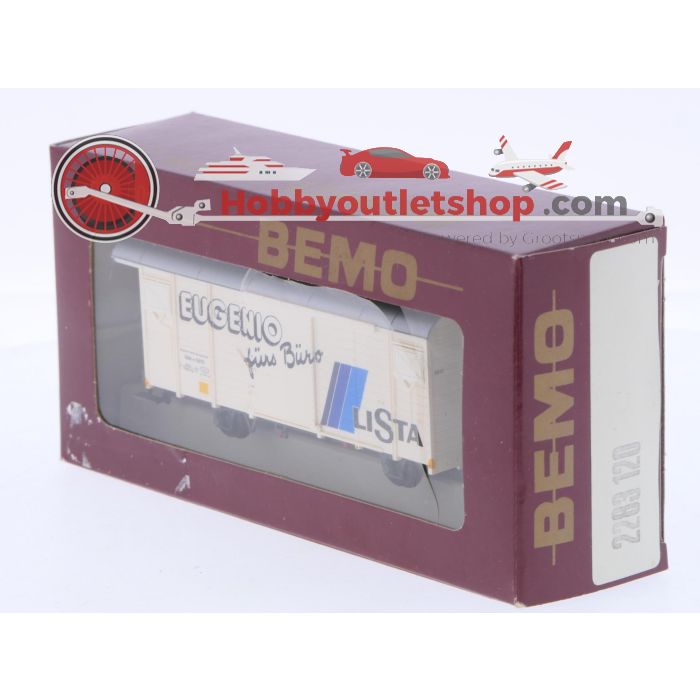 Schaal H0m Bemo 2283 120 gesloten goederenwagon Gbk-v 5610 "Eugenio fürs Büro LISTA AG" van de RhB #P232 is beschikbaar om te kopen in verhogingen van 1