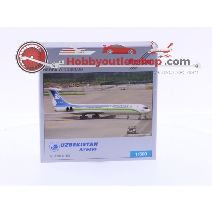 Schaal 1:500 Herpa 505093 Uzbekistan Airways Ilyushin IL-62 Limited Club Edition 2007 Reg.Nr. UK-86573 #7070 is beschikbaar om te kopen in verhogingen van 1