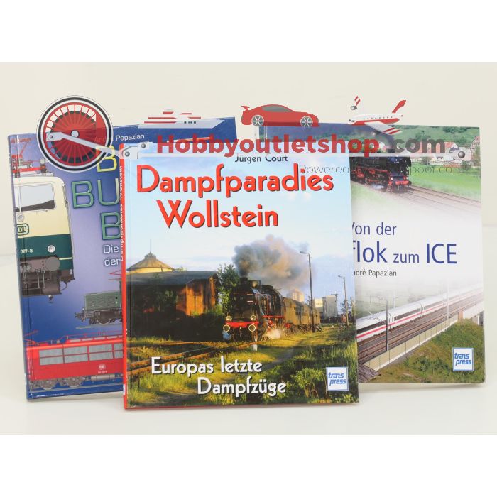 Transpress spoorwegenboeken set Bunte Bundesbahn: Die farbigen Jahre der DB 1980 bis 1993, Von der Dampflok zum ICE en Dampfparadies Wollstein - Hardcover #8737 is beschikbaar om te kopen in verhogingen van 1
