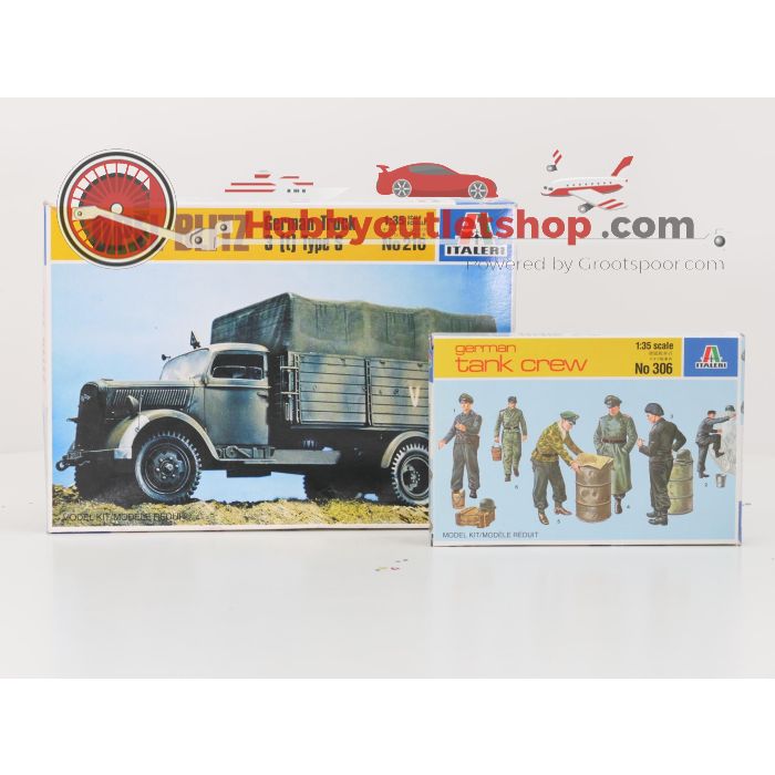 Schaal 1:35 Italeri 216 306 2 paketten met thema 2e wereld oorlog, Opel Blitz vrachtwagen en tank bemanning #4175
