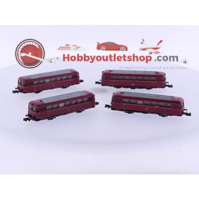 Schaal N Arnold 2910 Motorwagen, Arnold 2911 Bijwagen en Arnold 2912 2 x Stuurstandwagen, Schienenbus van de DB #4802