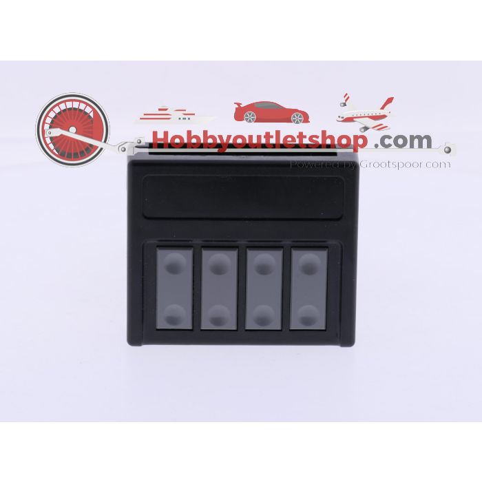 Das Gehäuse enthält vier einzelne Schalter, sodass mehrere Weichen über eine kompakte Einheit bedient werden können. Der Anschluss erfolgt über die Kontaktflächen auf der Rückseite.