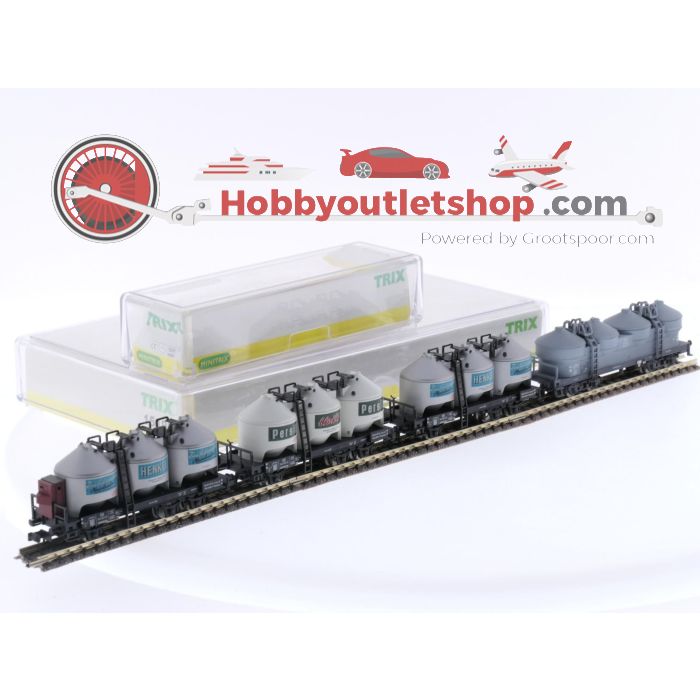 Schaal N Minitrix 15190 & 15193 silowagen & stofcontainerwagen an de DB #5512